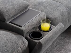 Zero Gravity konfor açısı vücudun ağırlık hissini dengeli dağıtır; uzun oturumlarda “koltukta kaybolma” hissi verir. Görsellerde görülen uzatılmış ayak desteği sayesinde bacak boyunuz uzun olsa bile topuklar dışarıda kalmadan daha bütün bir uzanma yüzeyi yakalarsınız. Orta konsoldaki kapaklı saklama haznesi, gömme bardaklıklar ve pratik üst tepsi/tabla alanı ise film gecelerini dağınıklıktan kurtarır.